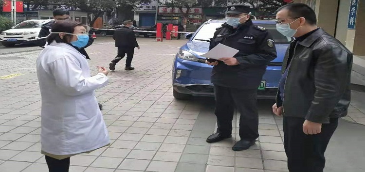 項目經理余大康帶領隊員住院部老院區(qū)大門,車輛及人員進入管理執(zhí)勤點
