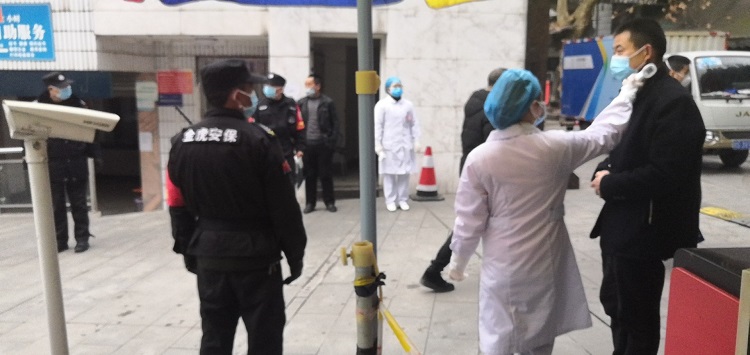 項目經理余大康帶領隊員門診部防控執(zhí)勤點黨委書記王平指導安保工作
